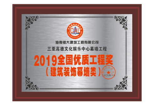 當(dāng)前位置:HOME > 資質(zhì)榮譽 > 2019全國優(yōu)質(zhì)工程獎 三亞高德文化娛樂中心幕墻工程