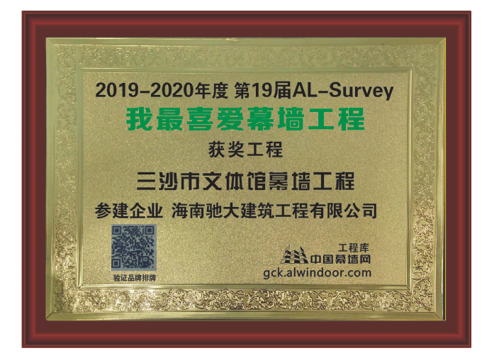 2019-2020年三沙市文體館頒發(fā)我最?lèi)?ài)幕墻工程